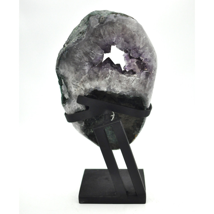 Large piece of Amethyst of A-quality from Brazil with polished sides, on a metal stand