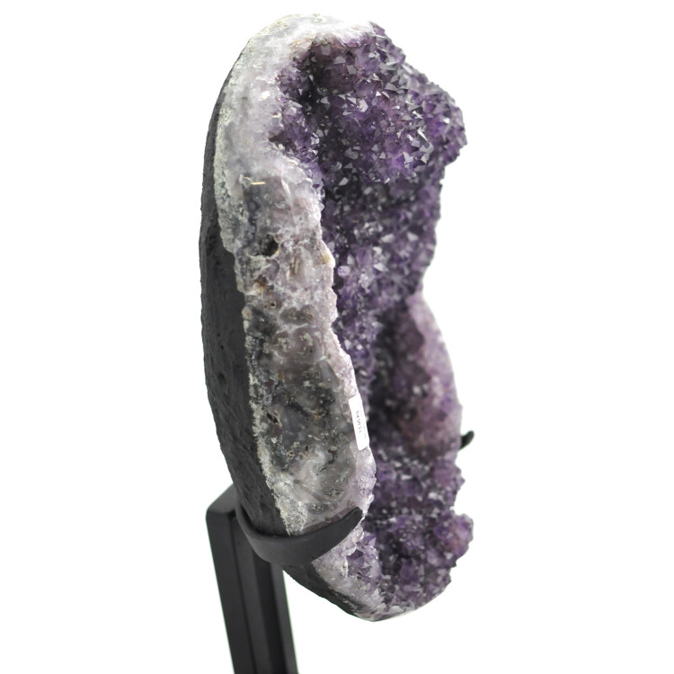 Large piece of Amethyst of A-quality from Brazil with polished sides, on a metal stand