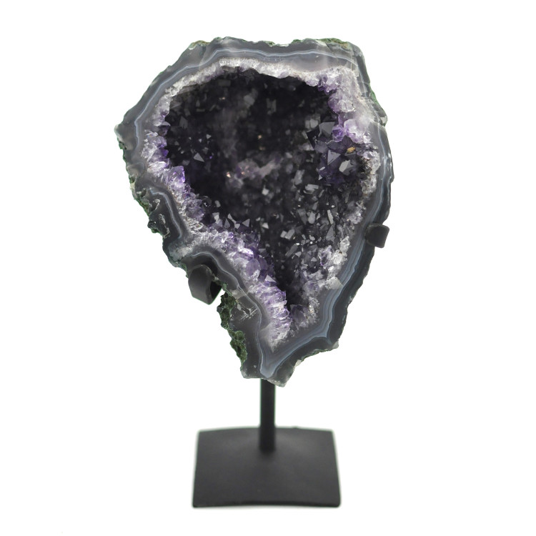 Amethyst of AA-quality from Brazil with polished sides, on a metal stand
