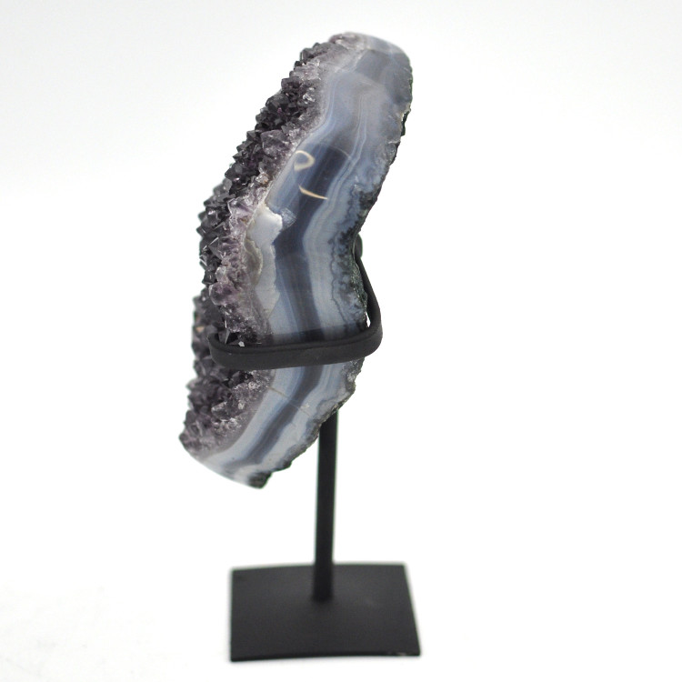 Amethyst of AA-quality from Brazil with polished sides, on a metal stand